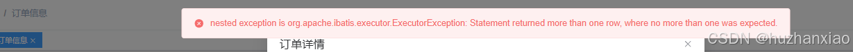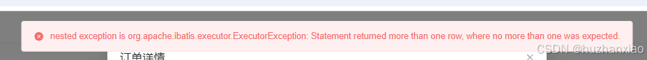 这个问题的意思是:嵌套异常为 org.apache.ibatis.executor.ExecutorException:执行语句返回了超过一行的结果,而预期返回的行数不超过一行。