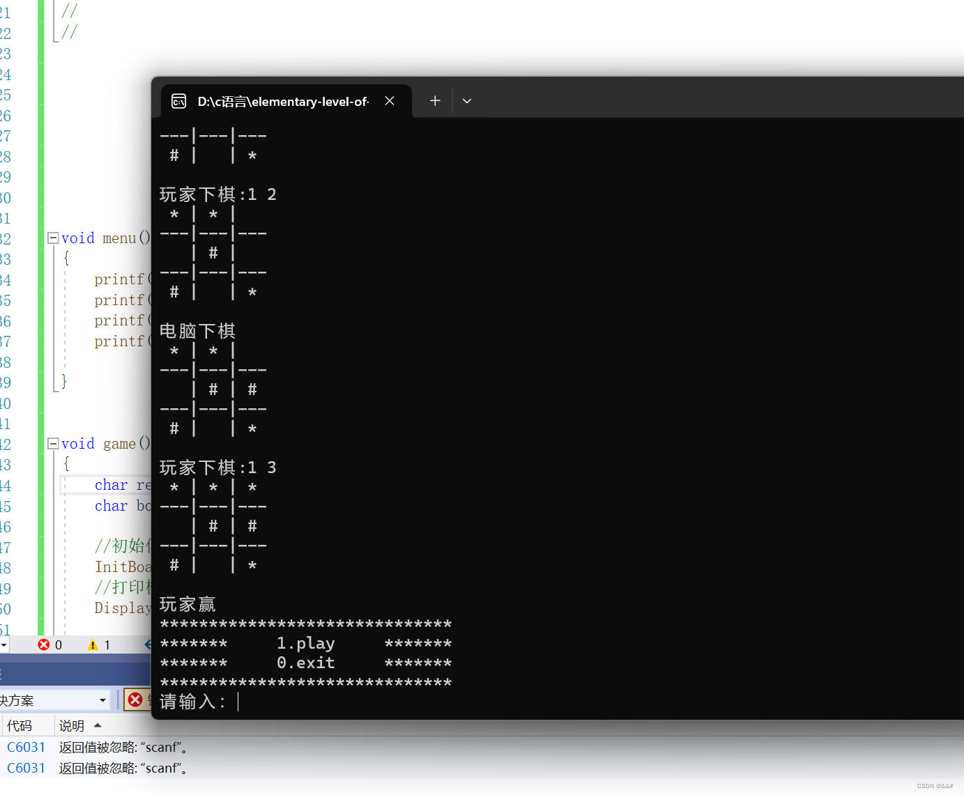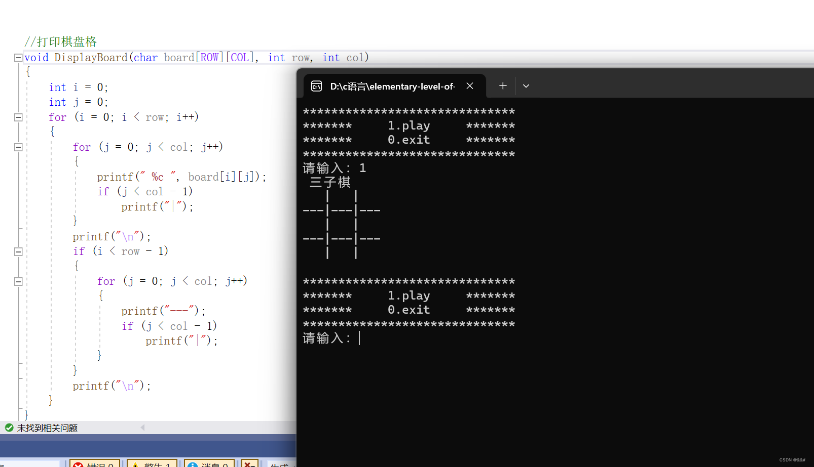 //把input作为判断 当输入1的时候玩一遍三子棋,然后可以继续选择