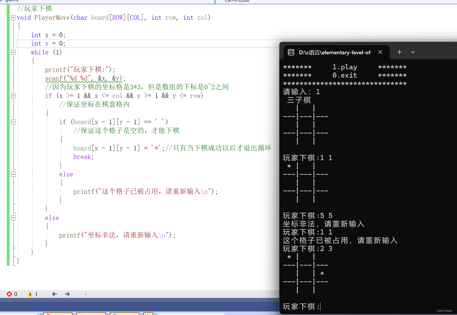 board[x - 1][y - 1] = '*';//只有当下棋成功以后才退出循环