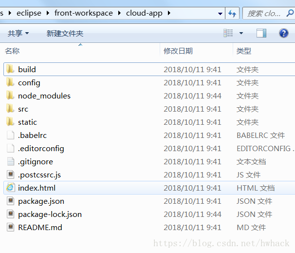 会在D:\workplaces\eclipse\front-workspace文件夹下创建cloud-app目录及文件:
