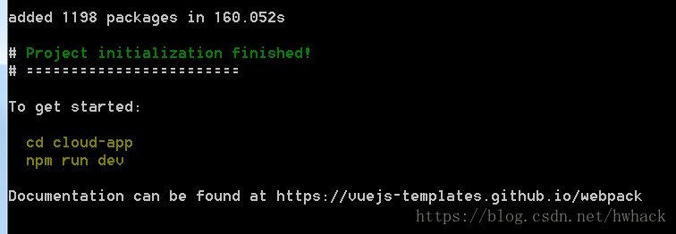 初始化项目大概需要3分钟,当出现以下提示,表示初始化成功: