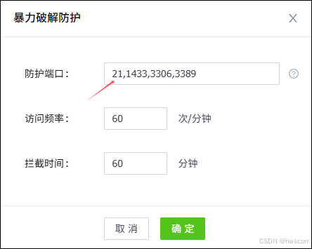 虽然复杂密码可以防止暴力破解,但是对于撞库却无效,因此我们还应该做好防撞库。方法也很简单,如果某个客户端频繁连接FTP,例如一分钟60次以上,肯定是暴力破解或撞库了。不过目前的FTP软件基本都不带防暴力破解功能,因此需要使用第三方安全软件来实现。可以使用《护卫神.防入侵系统》的“暴力破解防护”模块(如下图一),填写好需要防护的端口(FTP默认21端口),以及触发拦截的访问频率就可以了。