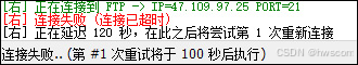 此时非成都地区客户端连接FTP,会提示连接失败(如下图三),这样FTP就非常安全了。