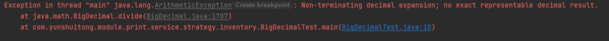 上述异常描述大致意思就是,如果在除法(divide)运算过程中,如果商是一个无限小数(如 0.333…),而操作的结果预期是一个精确的数字,那么将会抛出ArithmeticException异常。