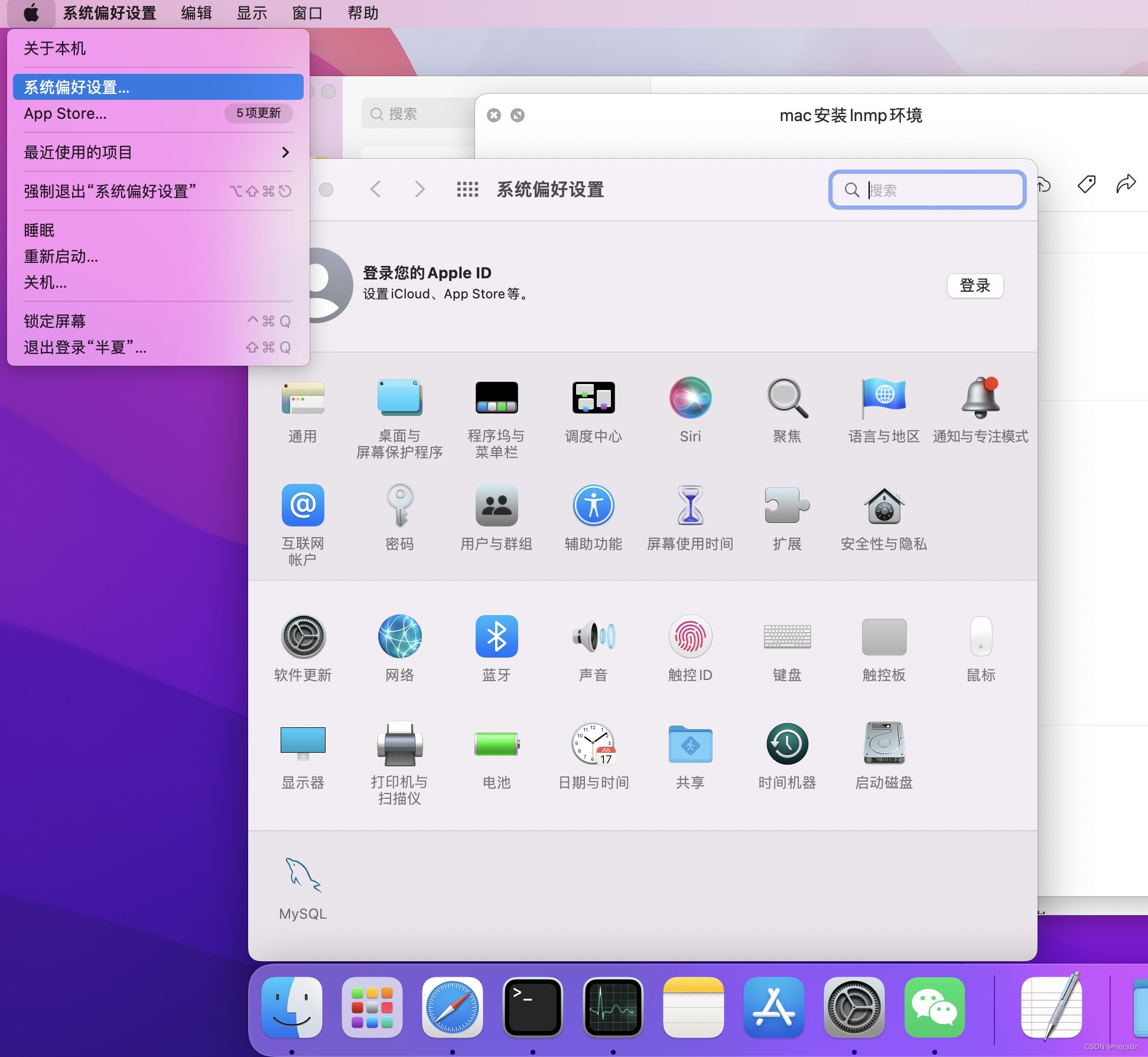 B.访达->系统偏好设置->mysql图标(最下面), 打开mysql的app