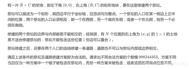 R,C<=3e5,N<=1e5,1<=x<=R,1<=y<=C,保证(x,y)两两不同。
