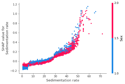 shap.dependence_plot("Sedimentation rate", shap_values, X)