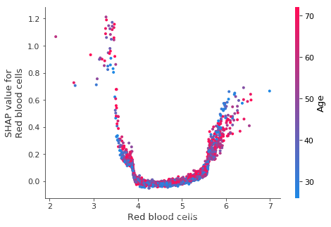shap.dependence_plot("Red blood cells", shap_values, X)