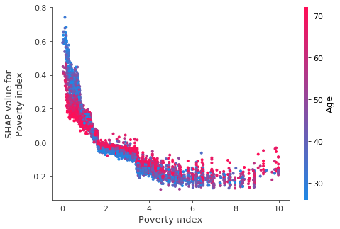 shap.dependence_plot("Poverty index", shap_values, X)