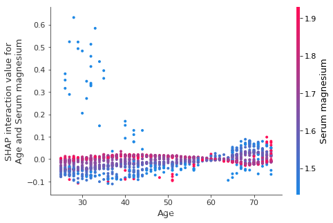 shap.dependence_plot("Serum magnesium", shap_values, X, show=False)