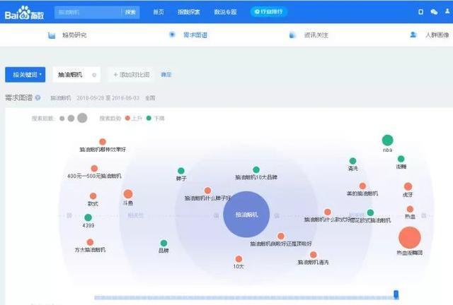 再比如像百度指数、微博指数、微信指数这些大数据平台我们也可以利用,比如百度指数里的人群画像和需求图谱功能我就经常用来分析用户需求。
