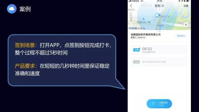 在短短的几秒钟时间内,要做好签到的场景,就要保证地图定位要准确,签到过程要顺畅,一旦有一点点的延迟或者卡,用户就会抱怨、投诉。