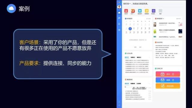 客户使用我们产品后,希望把我们公司的产品作为公司全员系统的统一入口——员工要用A应用,就到另一个地方,用B就全部从我们的产品入口进入。