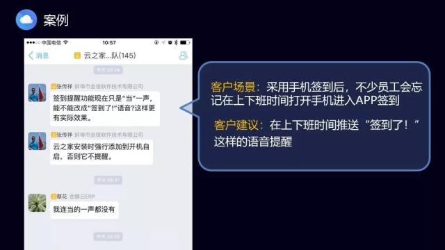 在采用我们的产品后,客户就把考勤机这个口径去掉了。但是在随后,客户反馈了一个问题——采用手机签到后,不少员工会忘记在上下班时间打开手机进入app签到。