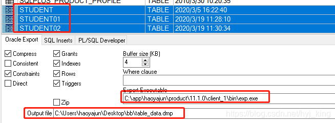 (1)此方式会将带有数据的表结构和数据一起导出到dmp文件;