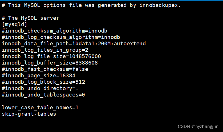 [root@localhost Software]# vi /home/mysql/data/backup-my.cnf