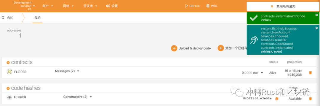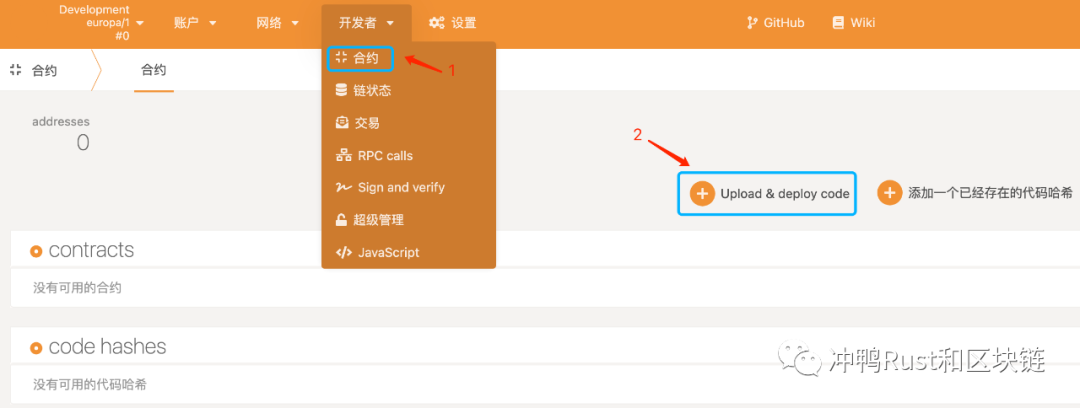 在 Substrate 中,部署合约的过程分为两个步骤: