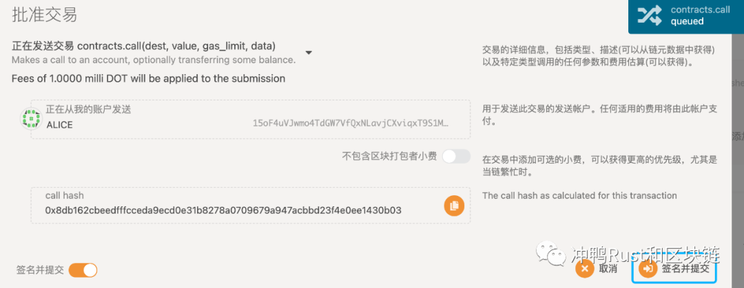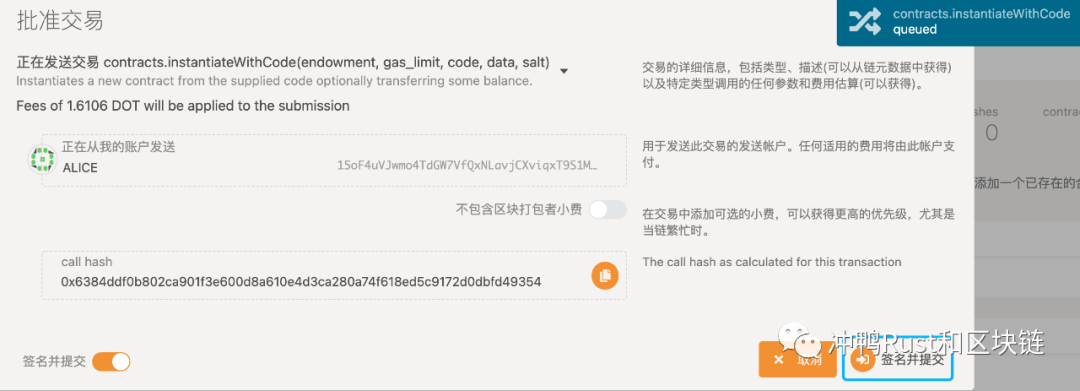 在“批准交易”窗口,点击“签名并提交”按钮,即可完成合约部署。