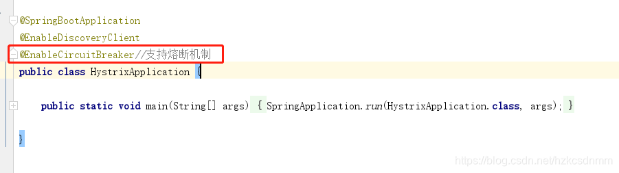 然后在启动类中声明熔断机制