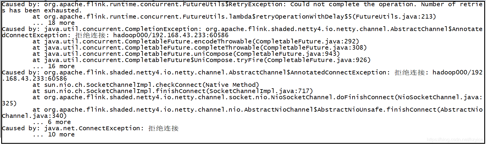 3. 启动直接失败,Yarn 界面任务状态是 FAILED,终端上日志显示 ,拒绝连接