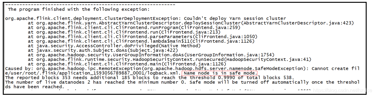 4. Name node is is safe mode,hdfs处理安全模式,只读不写(通常集群重启时,会自动开启),Flink启动时需要把元数据写到hdfs上