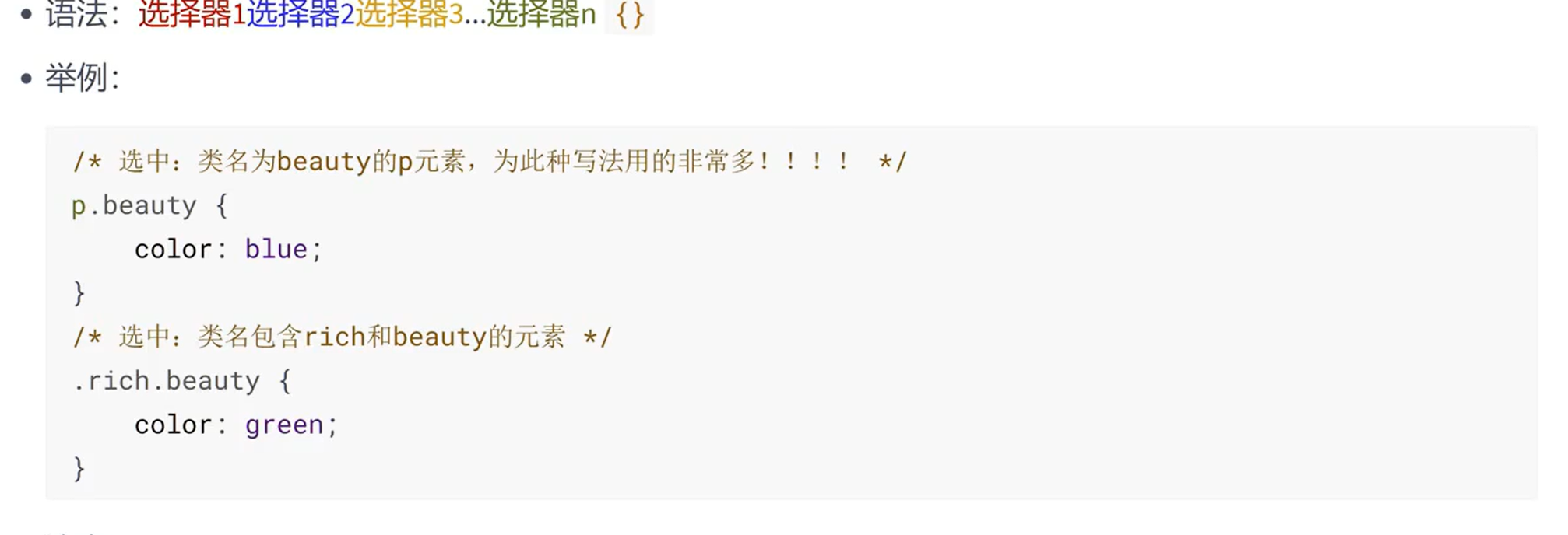 4.用的最多的交集选择器是:元素选择器配合类名选择器,例如:p.beauty。