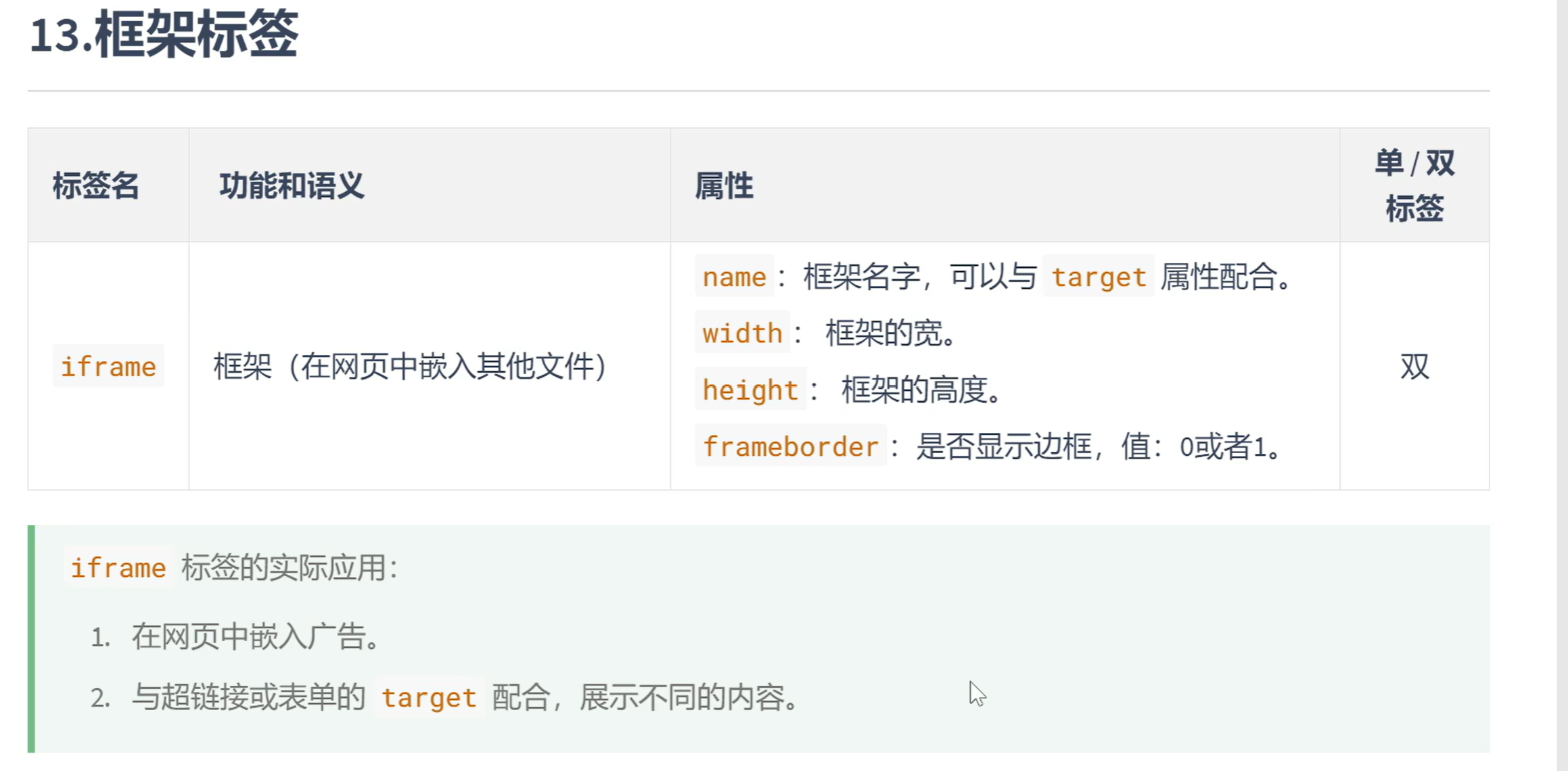 框架标签