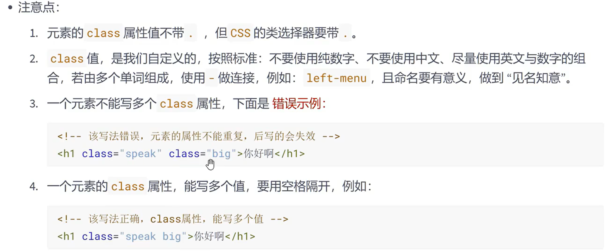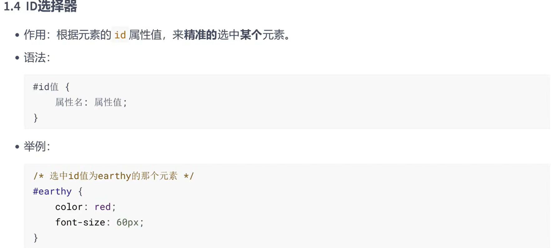 2.一个元素只能拥有一个id属性,多个元素的id属性值不能相同。