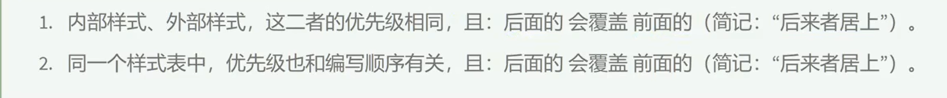 ·优先级规则:行内样式>内部样式=外部样式