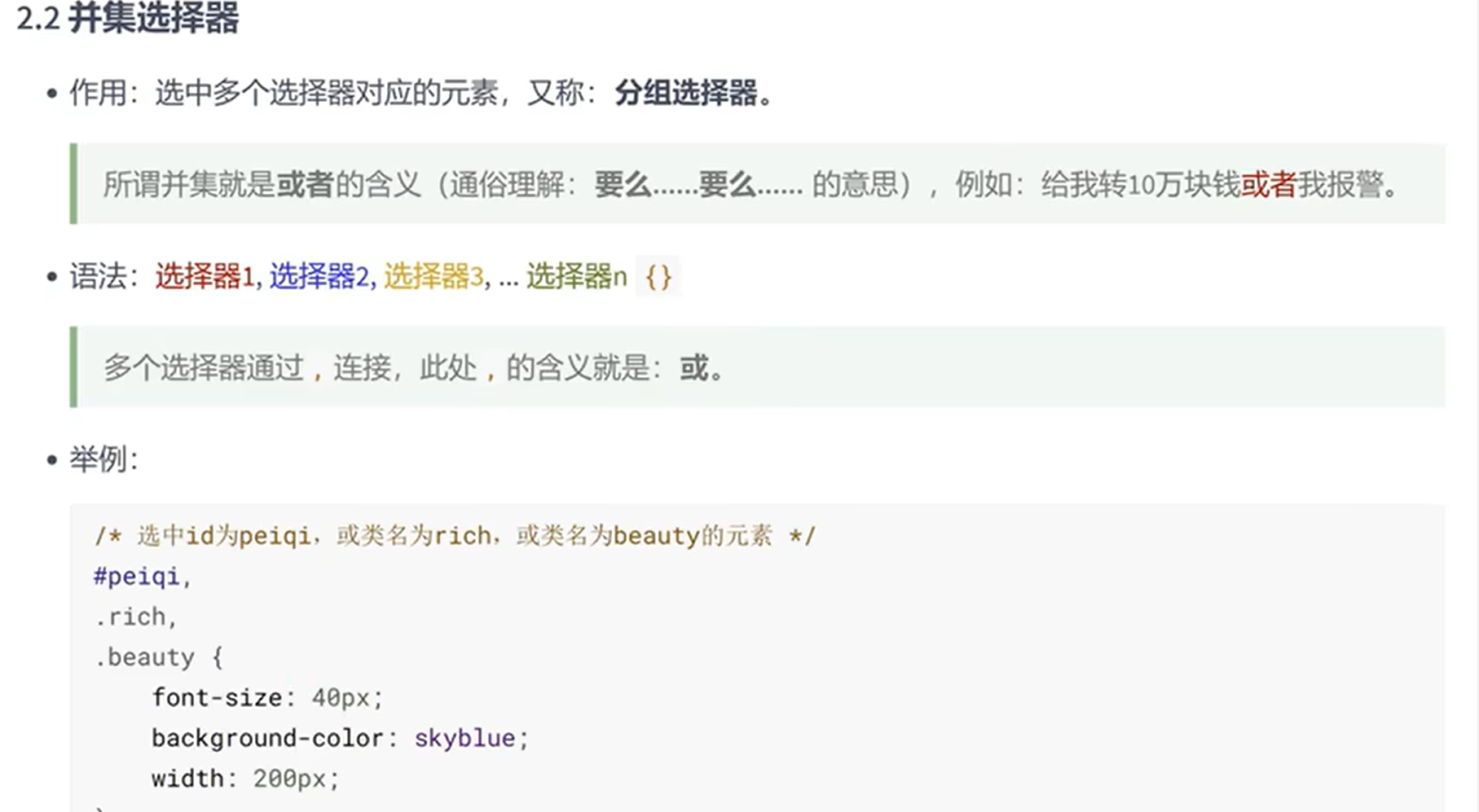 2.任何形式的选择器,都可以作为并集选择器的一部分。