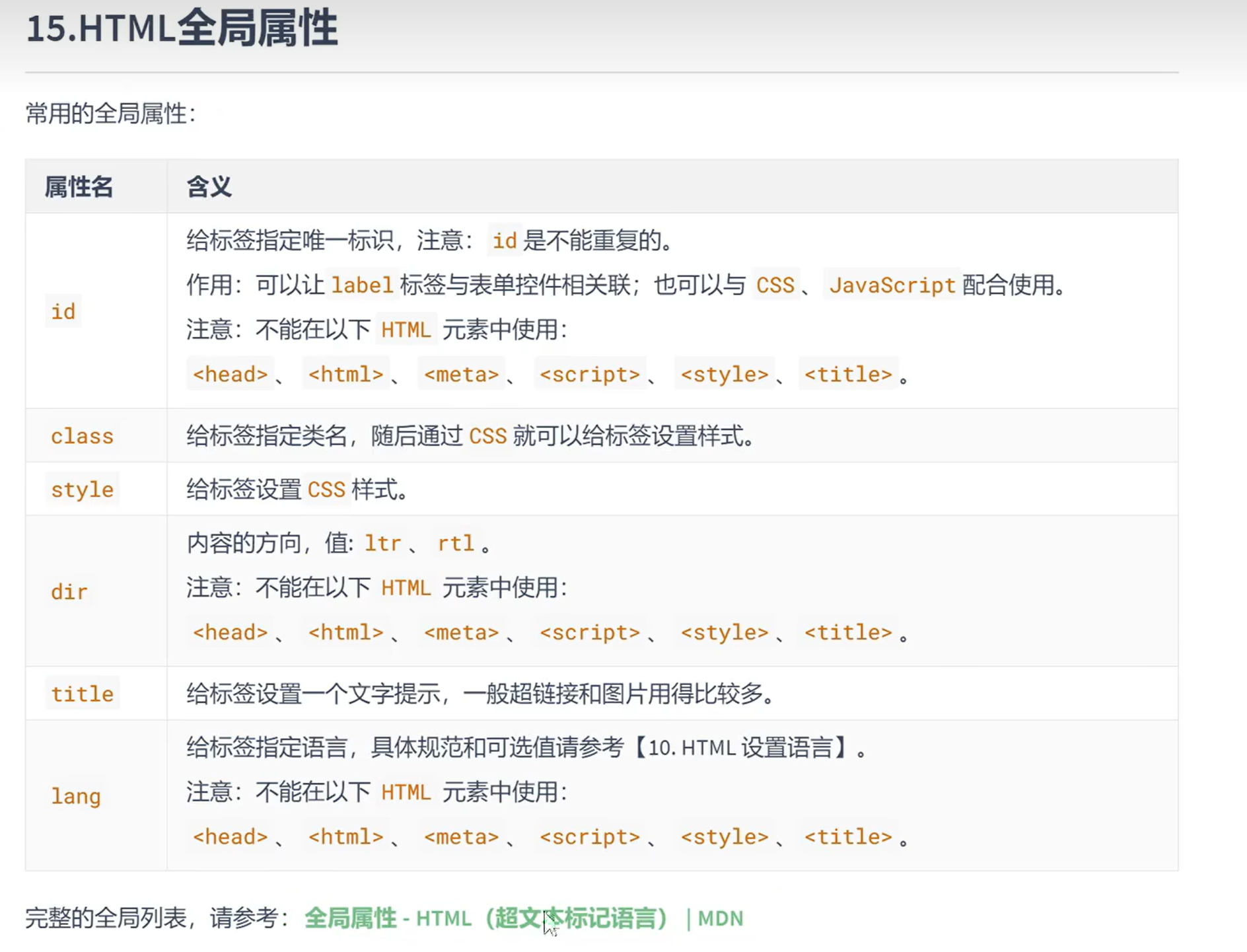 1.id属性值:尽量由字母、数字、下划线(-)、短杠(-)组成,最好以字母开头、不要包含空格、区分大小写。