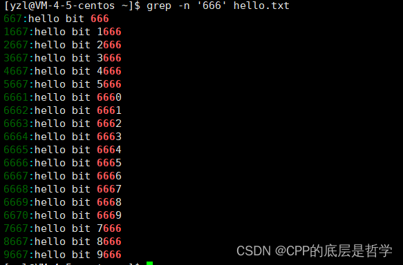 [yzl@VM-4-5-centos ~]$ grep '666' hello.txt | cat | tail -3 | tac > 666.txt