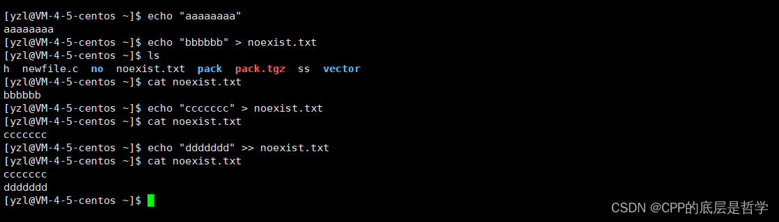 [yzl@VM-4-5-centos ~]$ echo "ccccccc" > noexist.txt