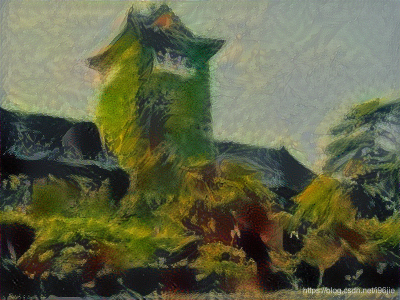 之后只需要用梯度下降,经过不断迭代,就可以完成风格迁移了。