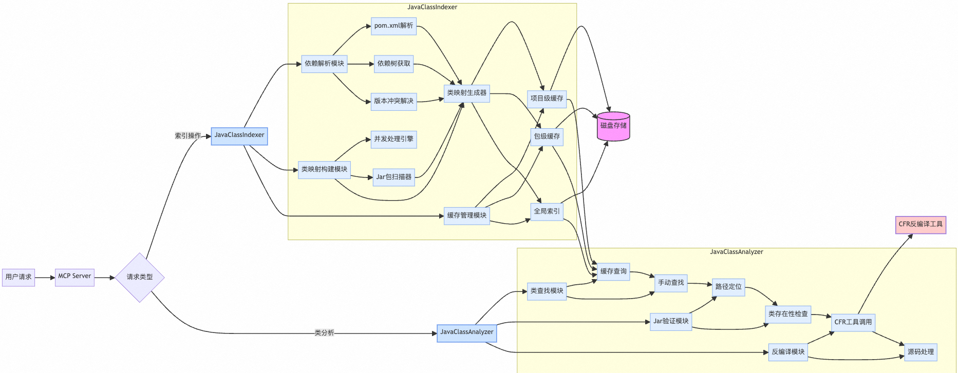 mvn dependency:tree扫描项目所有依赖的二方包,再通过jar tf命令解析每个jar包,建立一个“类全名 -> JAR包路径”的本地映射索引。 -