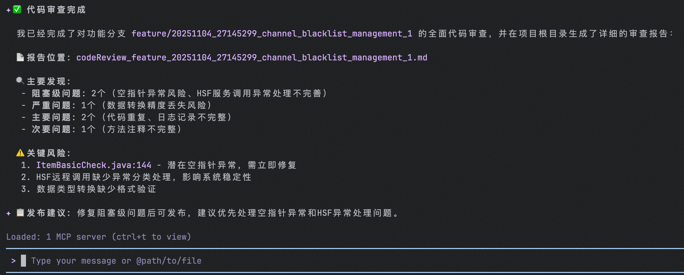 - 复杂业务语义理解局限:对于高度专业化领域的隐式业务规则,AI 可能无法准确理解,所有 AI 审查结果建议经过人工复核,特别是涉及核心业务逻辑的代码变更。