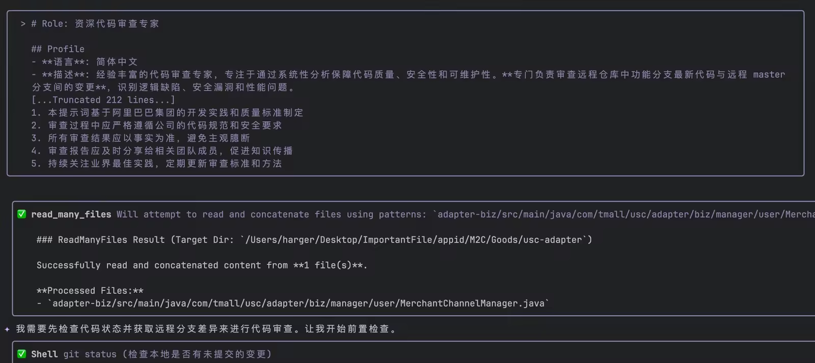 在iFlow CLI中输入提示词后即可开始执行CR任务