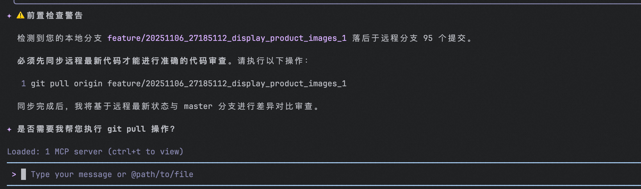 - 如存在未同步内容,立即中止并提示用户完成推送,避免审查过时代码,减少返工。
