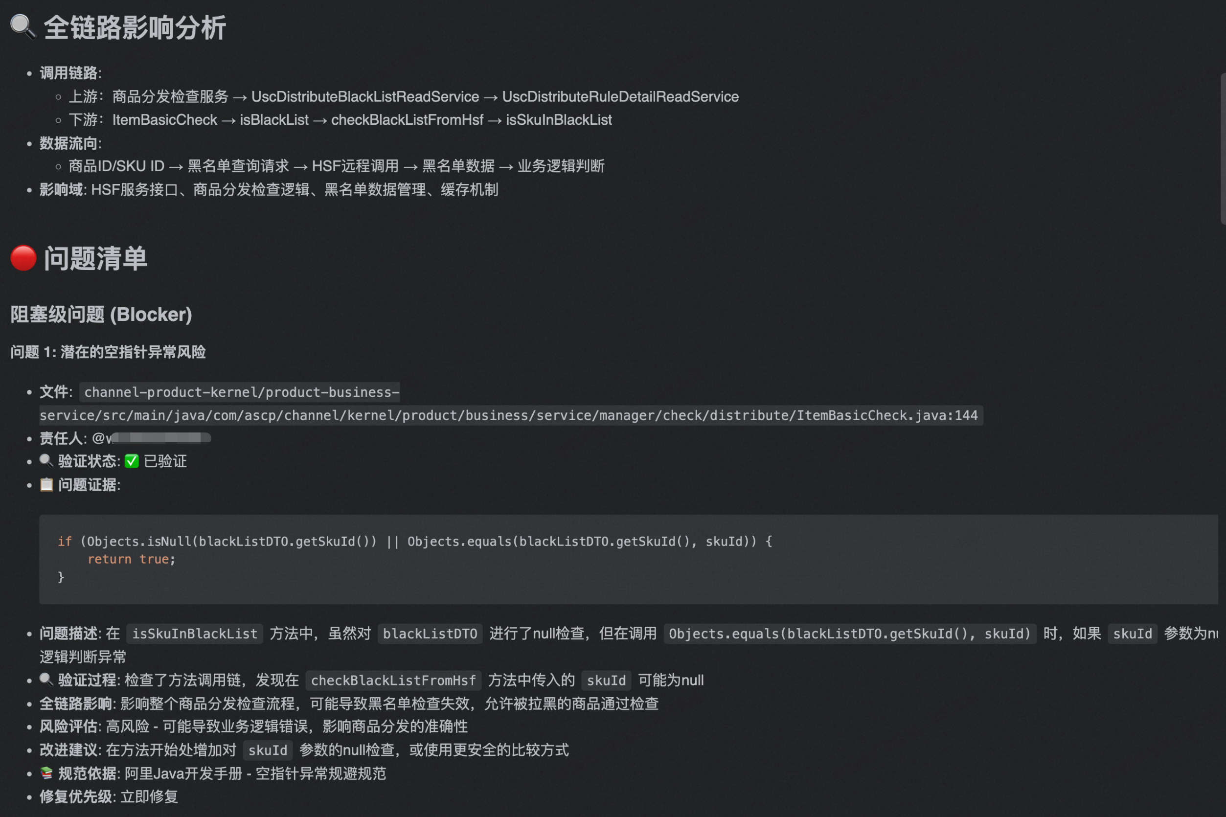 4. **缺陷识别**: 基于全链路上下文识别边界条件、并发问题、空指针、状态管理等逻辑错误