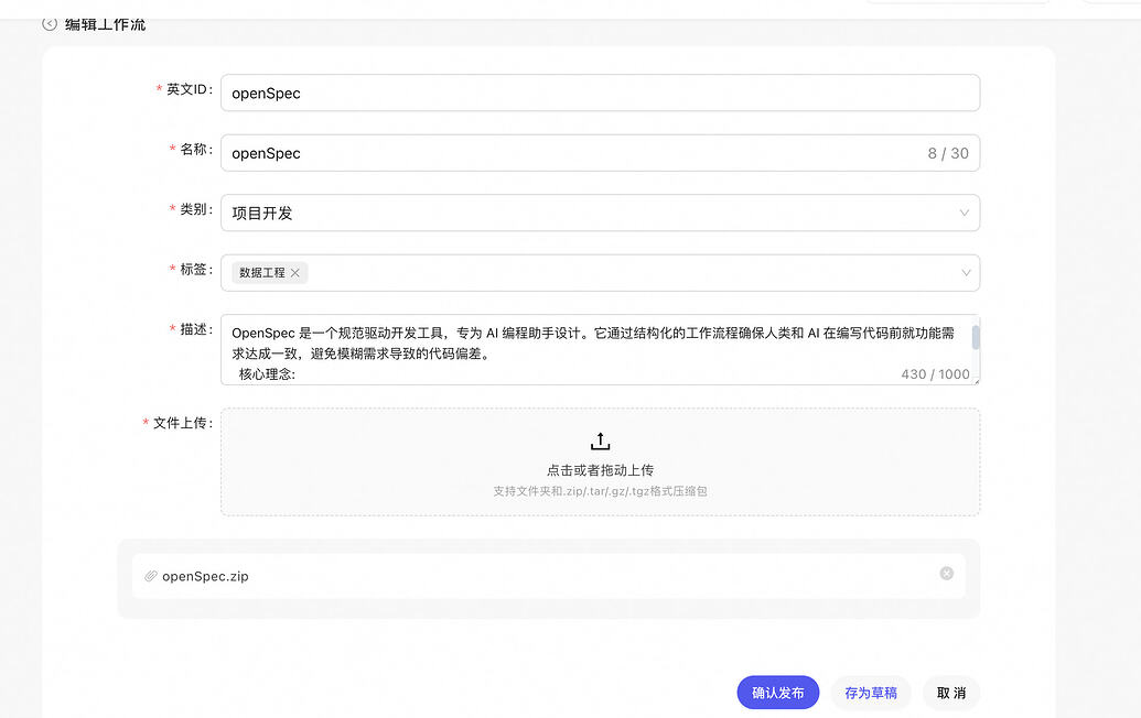 您开发了优秀的工作流并希望分享给其他用户时,需要先将工作流打包上传到心流开放平台。