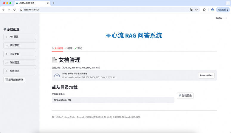 输入请求:请结合LangChain、streamlit和心流的模型,接口文档:https://docs.iflow.cn/docs/ ,创建可以访问的结合RAG的大模型问答系统。