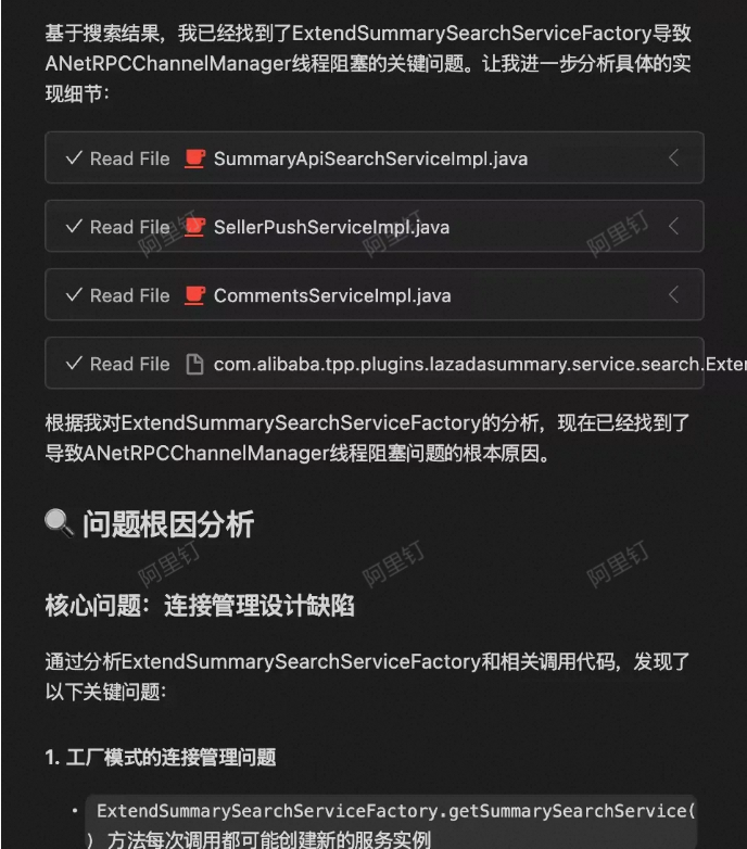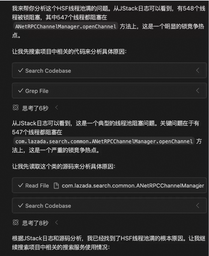 有一次我遇到了 HSF 线程池满的问题,AI帮我分析思路,让我顺利解决了问题