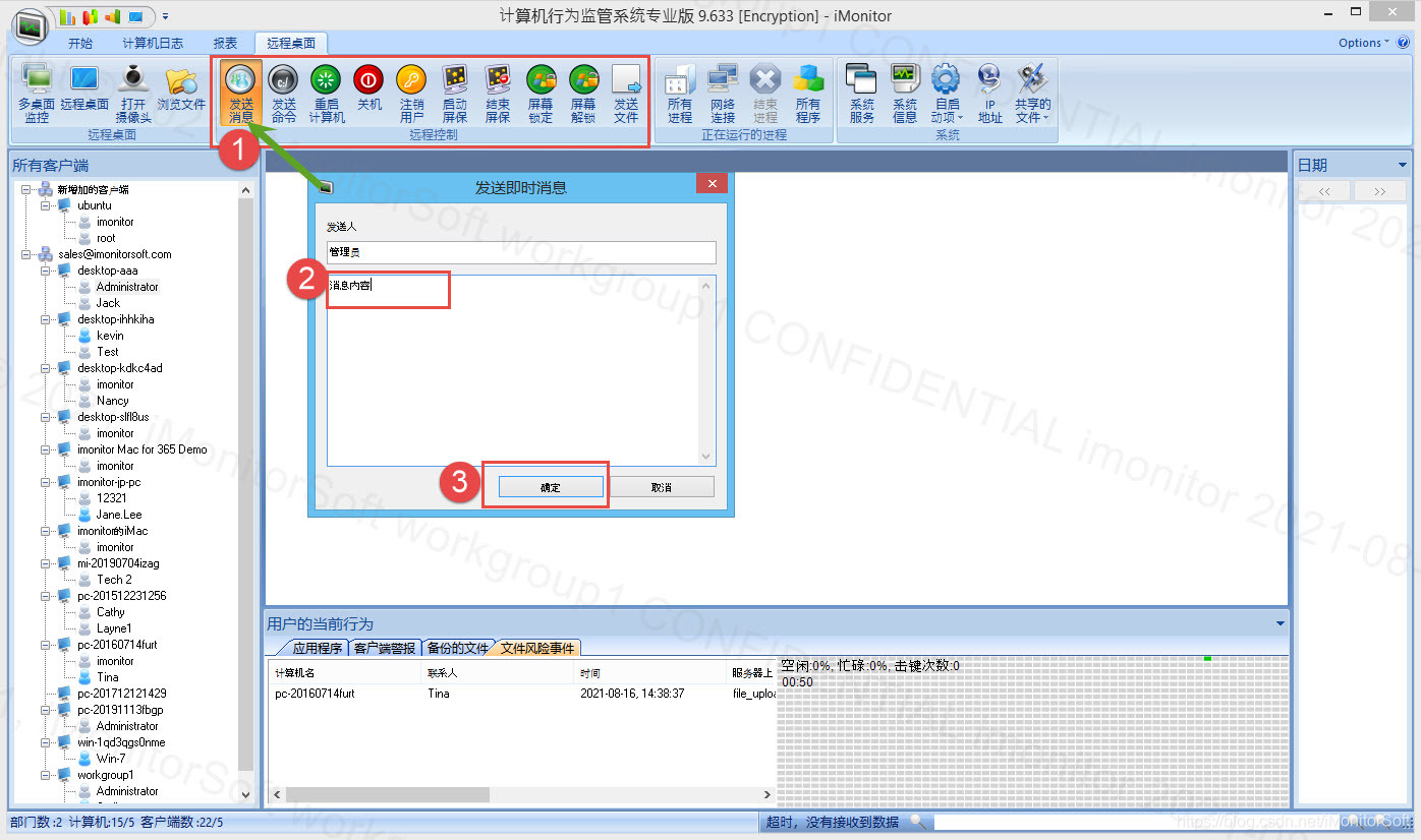 以上所有的操作步骤基本上都相同,都是先选择功能,再选择客户端。就像发送文件,发送过去的文件会直接在桌面上,其他有关iMonitor EAM 更多的功能,可以安装软件进行免费试用。