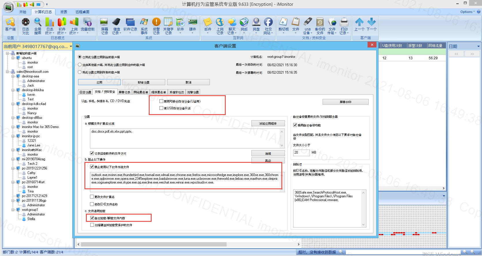 本文介绍了企业如何防止内部重要资料泄露,主要通过电脑监控软件iMonitorEAM实现文件管理。该软件提供文件自动备份、禁用外接设备、外发文件管控和文件透明加密等功能,有效保护公司信息安全。通过设置权限、审批流程和加密机制,确保公司文件不被非法拷贝或外发。