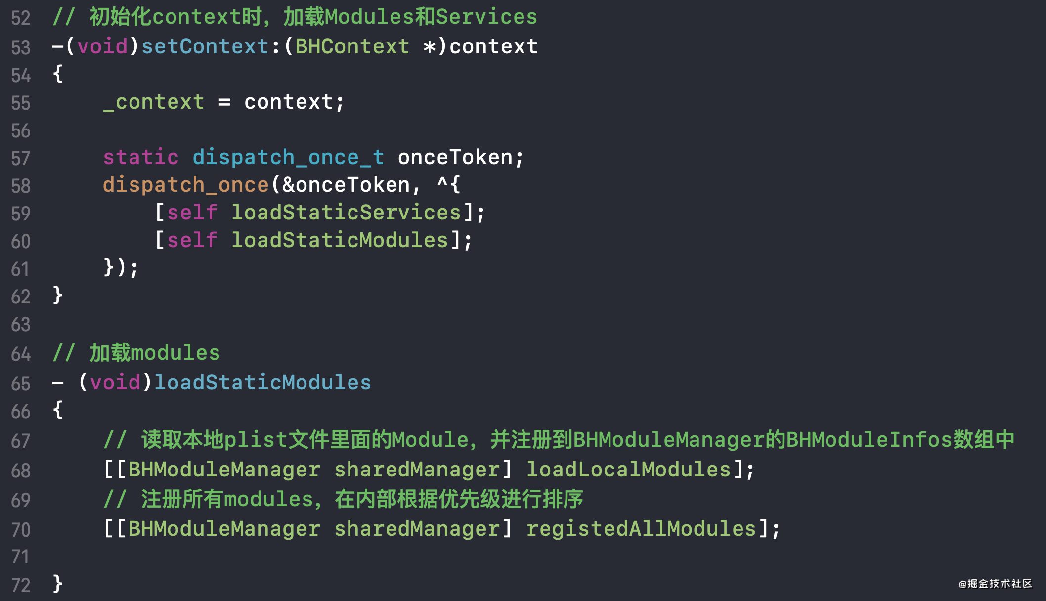 在BeeHive主要是通过BHModuleManager来管理各个模块的。BHModuleManager中只会管理已经被注册过的模块
