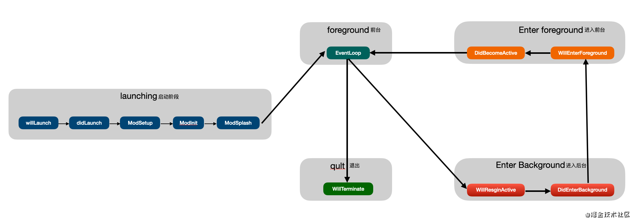 BeeHive会给每个模块提供生命周期事件,用于与BeeHive宿主环境进行必要信息交互,感知模块生命周期的变化。