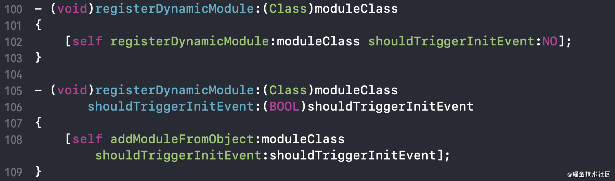 其底层还是同第一种方式一样,最终会走到addModuleFromObject:shouldTriggerInitEvent:方法中