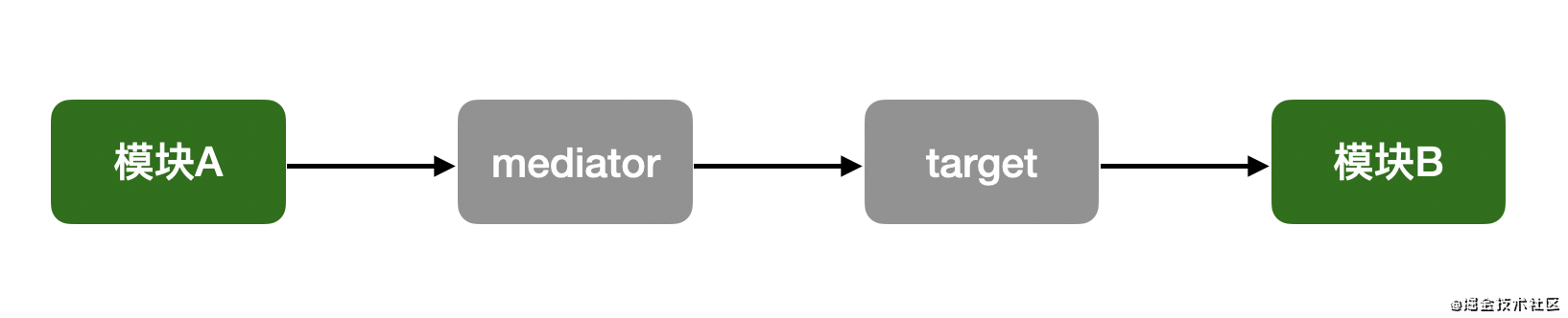 拆分的组件都会依赖于中间者,但是组间之间就不存在相互依赖的关系了。由于其他组件都会依赖于这个中间者,相互间的通信都会通过中间者统一调度,所以组件间的通信也就更容易管理了。在中间者上也能够轻松添加新的设计模式,从而使得架构更容易扩展。