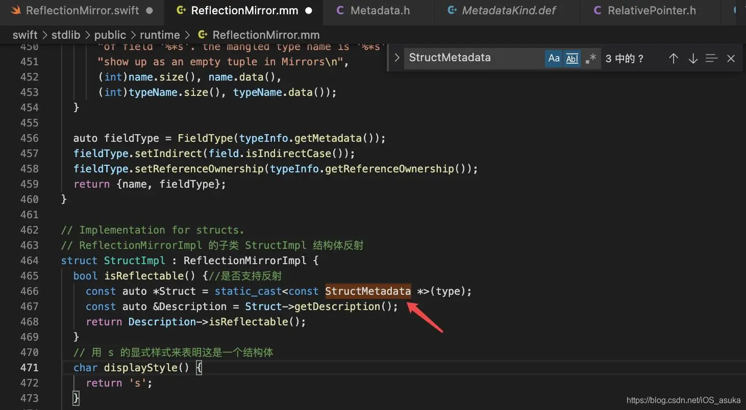 internalReflecting方法(路径为swift->stdlib->public->core->ReflectionMirror.swift)