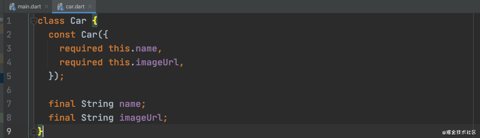 在探索ListView之前,我们先把模型实现一下,我们这里展示的一组关于汽车的图片和名字,就定义一个Car类,我们新建一个car文件用来存放我们的模型代码,代码如下: